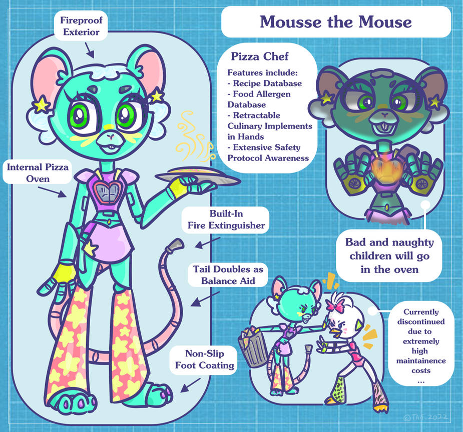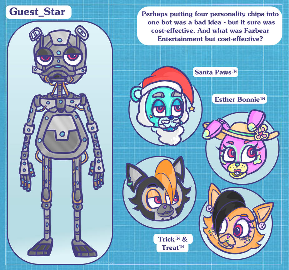 Fanmade concepts for additional characters for the game Five Nights at Freddy’s – Security Breach, intended to fill unused roles within gameplay.