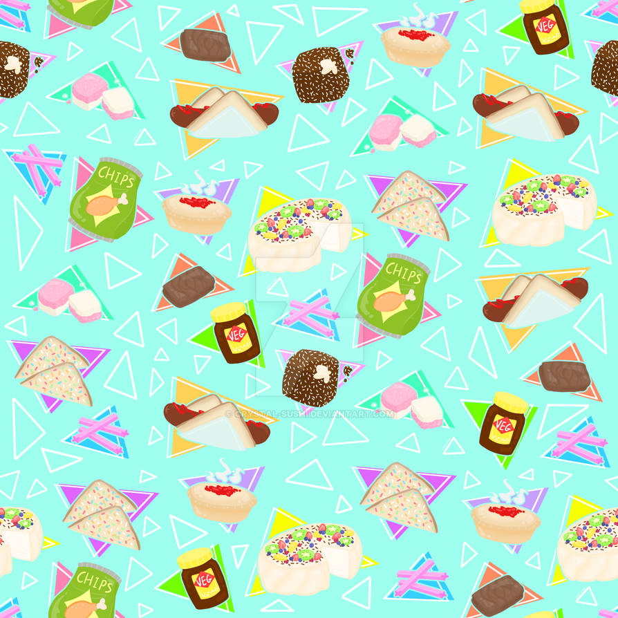 A print featuring some classic Australian foodstuffs in a colourful pop art style.