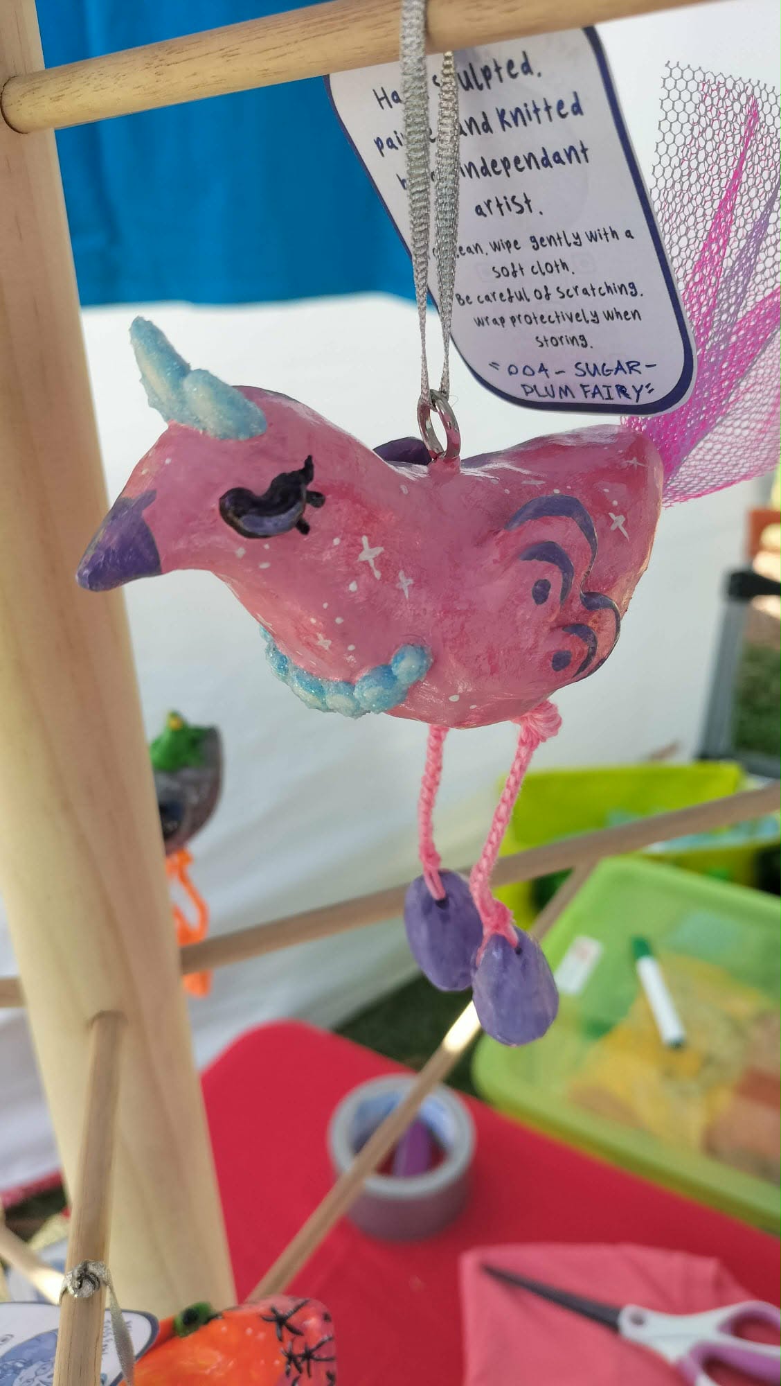 These are wholly handmade bird ornaments comprised of polymer clay with a tinfoil core, and macrame legs. Painted with lightfast acrylics and individually decorated, each one is unique; named, signed and numbered!